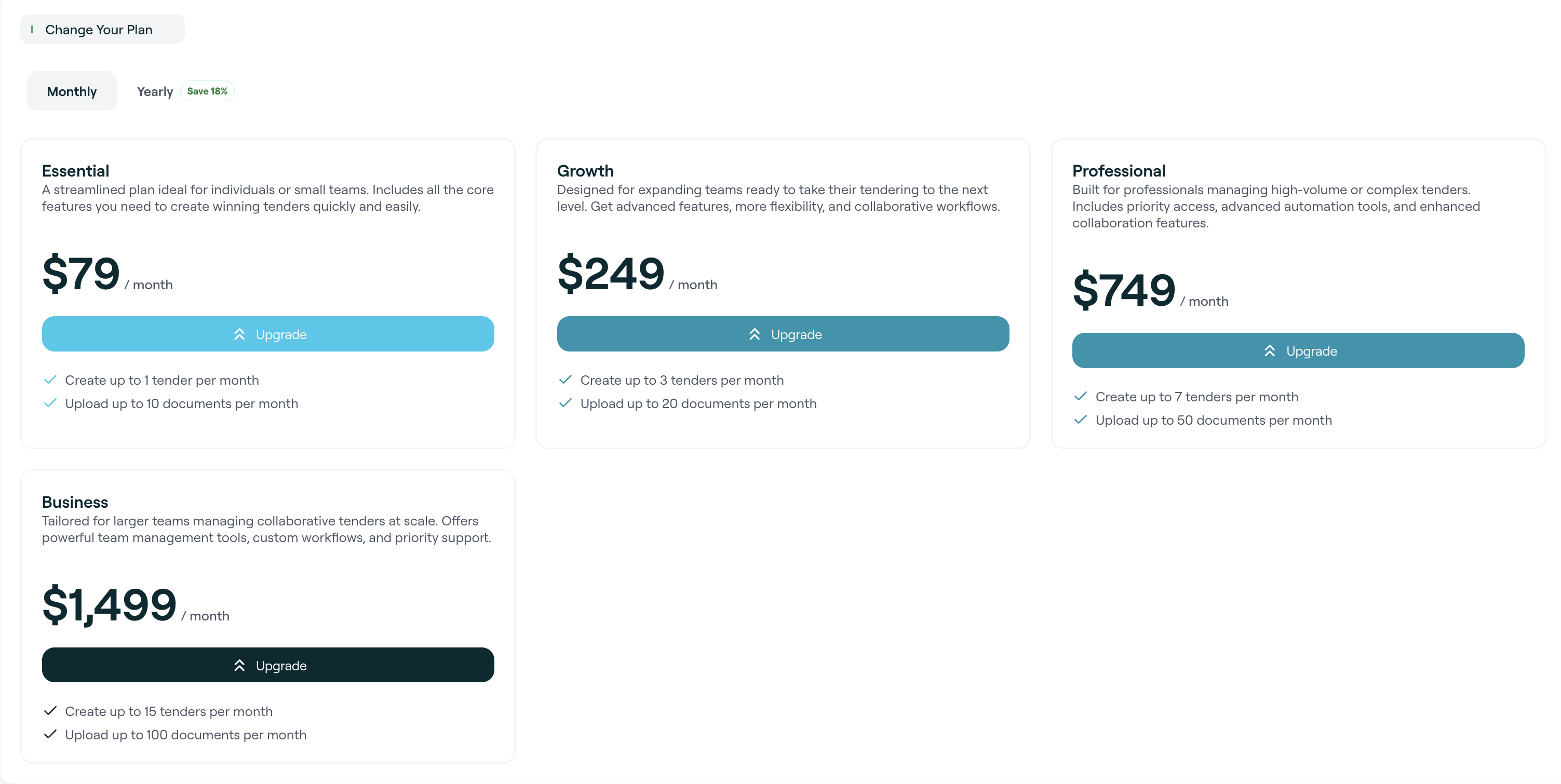 Aetheron Response offers four subscription plans to match your tendering frequency and business needs.