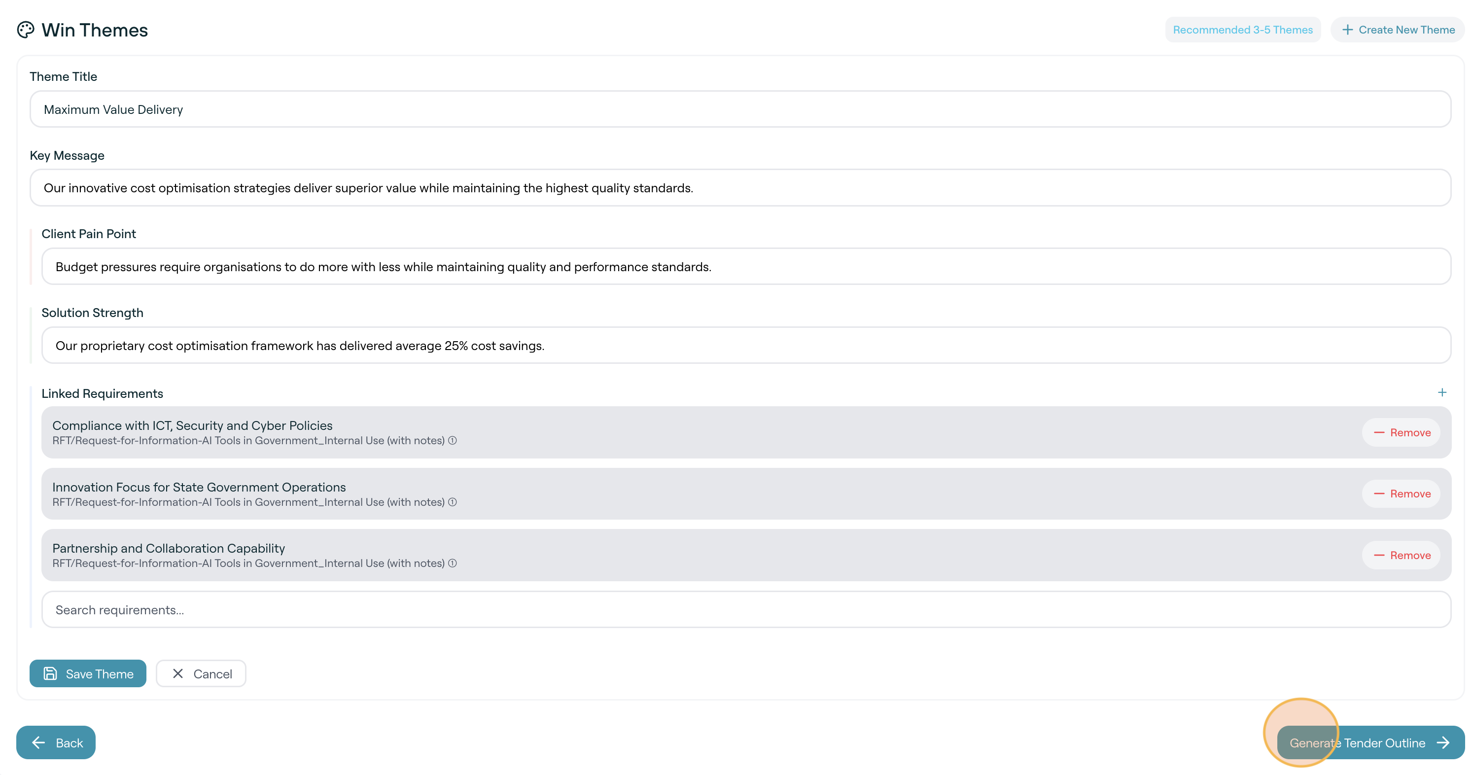 - Proceed to outline: Click "Proceed to Win Themes" or similar navigation button