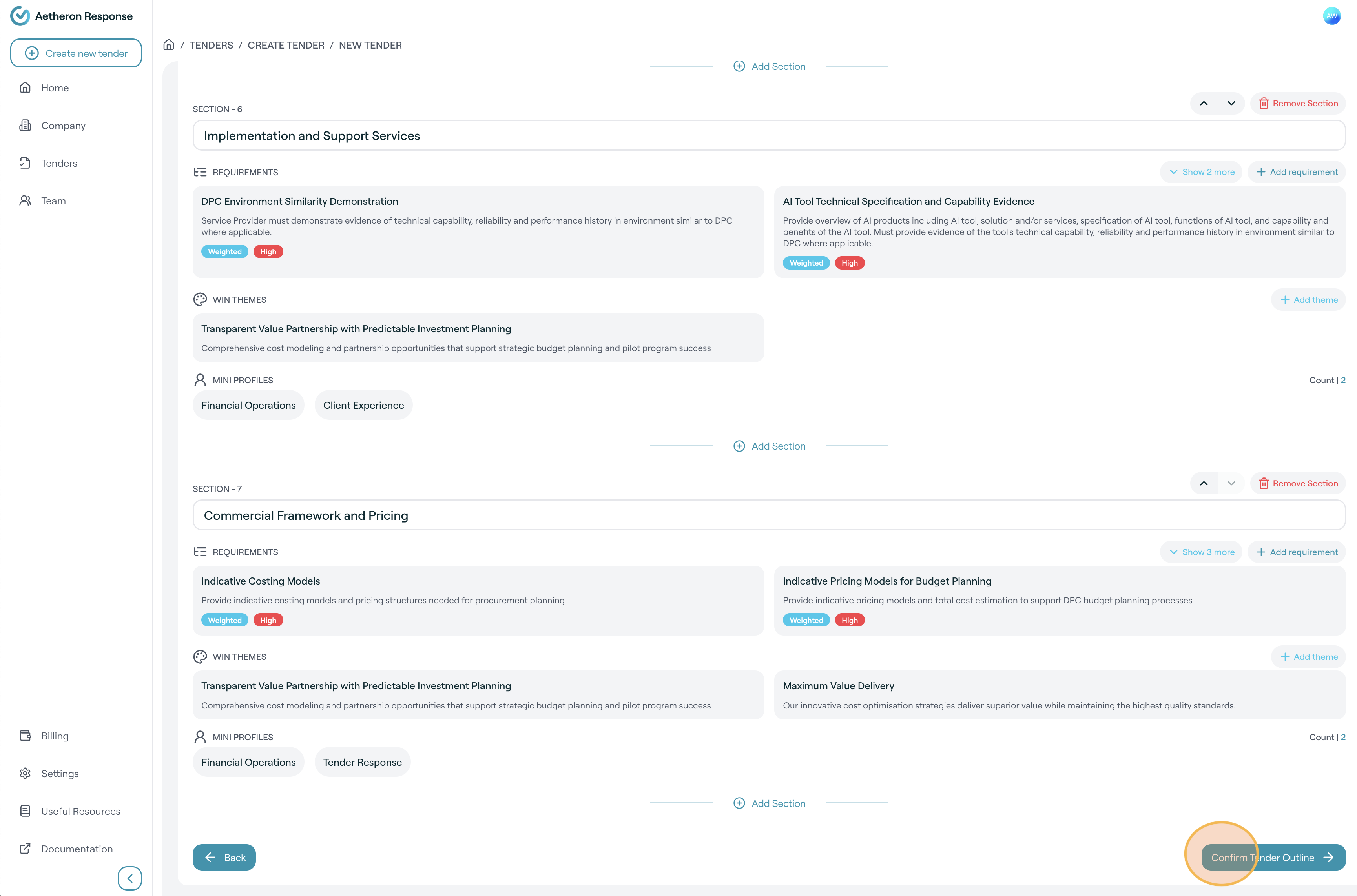 - Requirements Analysis: AI extracts and categorises all tender requirements