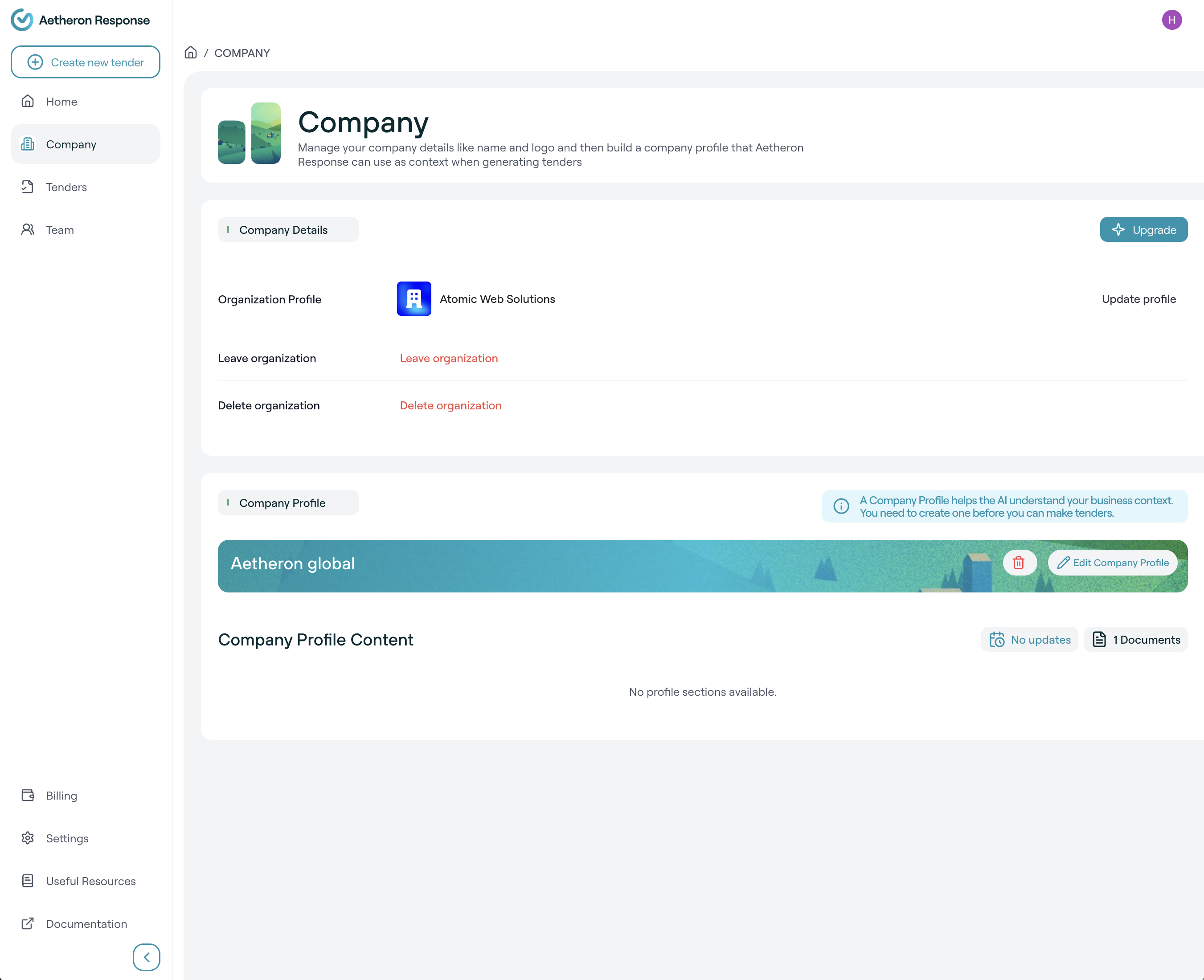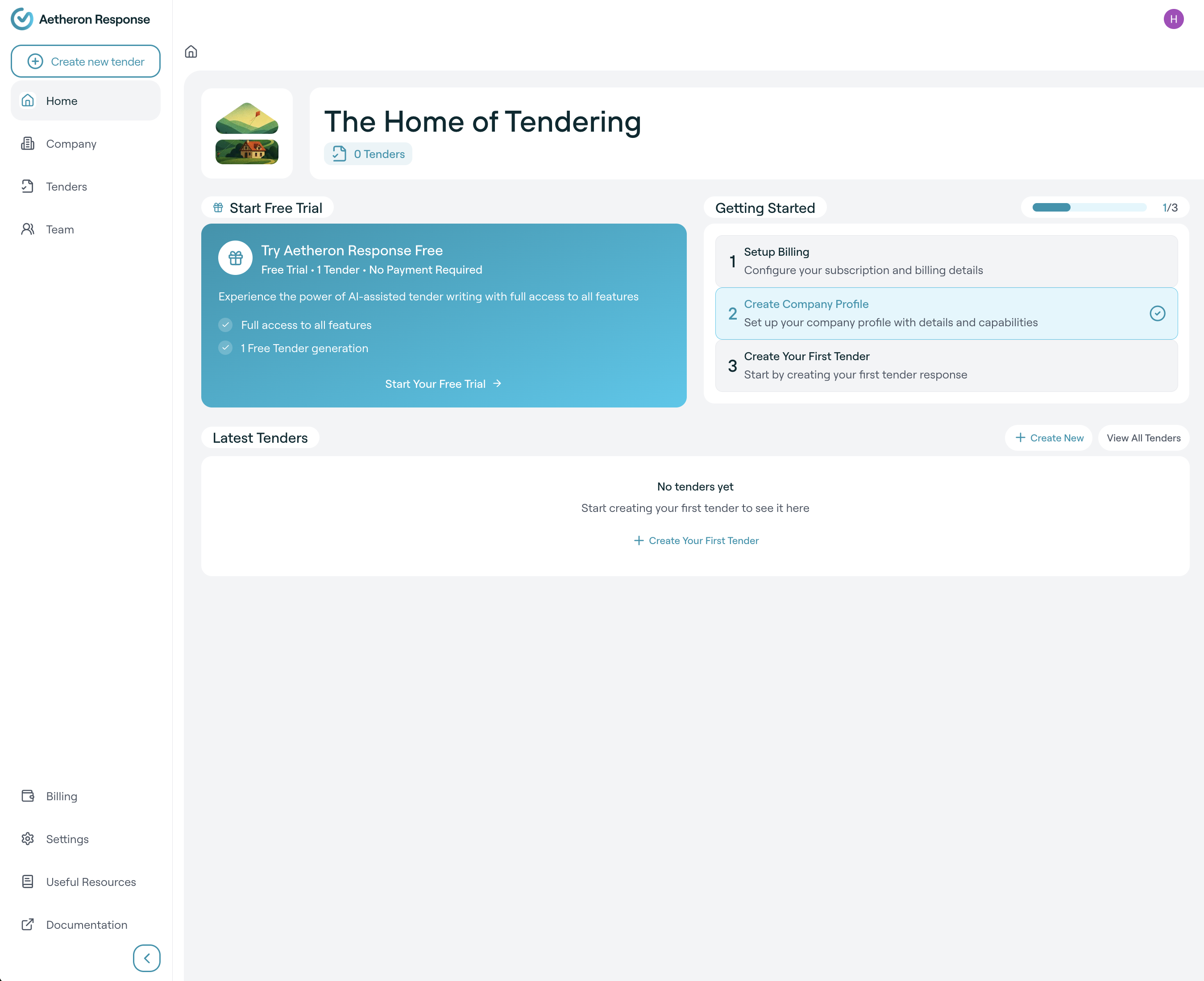 Aetheron Response is an AI-powered platform that helps businesses create winning tender responses in hours instead of weeks. The platform analyses tender requirements and generates professional, tailored responses based on your company's capabilities.